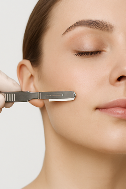 Dermaplaning is a gentle, non-invasive treatment that instantly reveals smoother, brighter skin. Using a specialized tool, our estheticians carefully exfoliate the surface of the skin to remove dead skin cells and fine vellus hair (peach fuzz). The result is a radiant complexion with improved product absorption and a flawless base for makeup.
